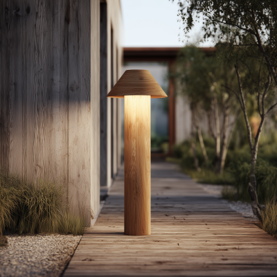 Solid Wood Outdoor Bollard Light With Soft Ambient Glow