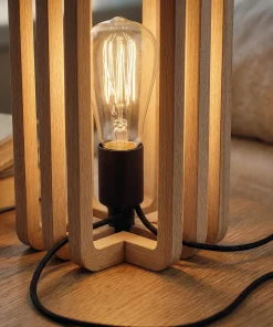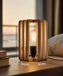 Designed for bedside tables, shelves, or reading corners, the lamp brings warmth and balance to minimalist and Scandinavian interiors. Its compact size and natural wood presence make it both a functional light source and a subtle decorative element, ideal for creating a relaxed evening ambiance.