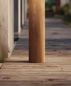 This outdoor bollard light is crafted from solid wood and shaped with a clean, vertical profile that blends naturally into garden paths, walkways, and modern landscapes. The concealed light source diffuses a soft, warm glow downward, providing clear guidance without overpowering the surroundings.