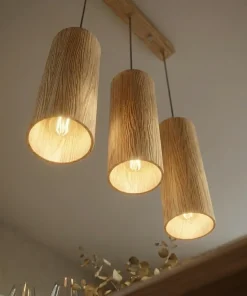 With its clean lines and warm material presence, this fixture suits modern, Scandinavian, and minimalist interiors. It works especially well above dining tables or kitchen islands, where natural textures and gentle illumination help define the space without overwhelming it.