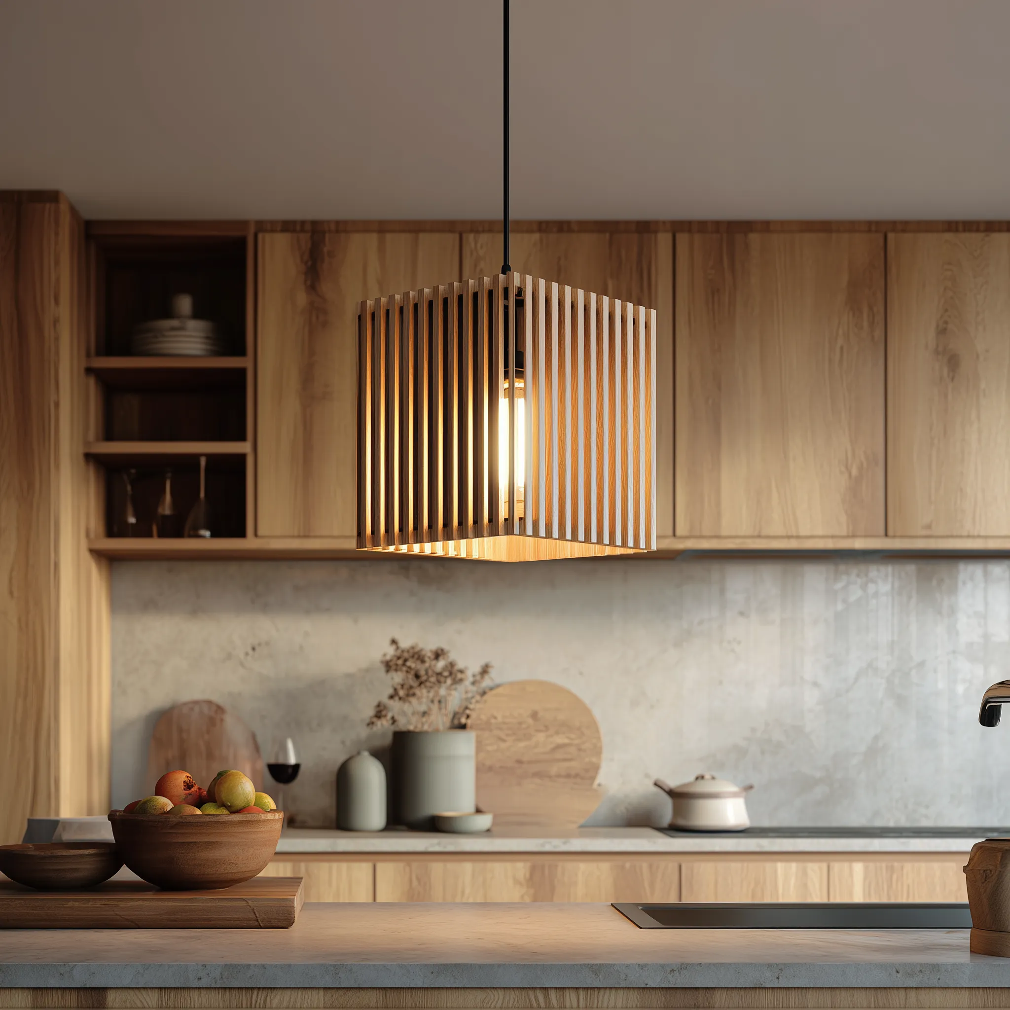 Well suited for kitchen islands, dining tables, or breakfast counters, this piece provides both functional illumination and subtle visual interest. Its clean geometry and natural material make it an easy fit for modern, Scandinavian, or contemporary interiors that favor warmth and simplicity.