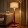 Designed with a straight wooden stand and a round base, this floor lamp offers stable placement and a clean vertical profile. The drum fabric shade diffuses light evenly, making it suitable for everyday ambient lighting in living rooms, bedrooms, or quiet seating areas.
