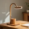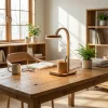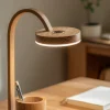This desk lamp features a smooth arched wooden stem that supports a slim, circular light head, casting a soft downward glow ideal for reading, writing, or quiet work. The integrated LED provides even, comfortable lighting without harsh glare, making it suitable for everyday desk use.