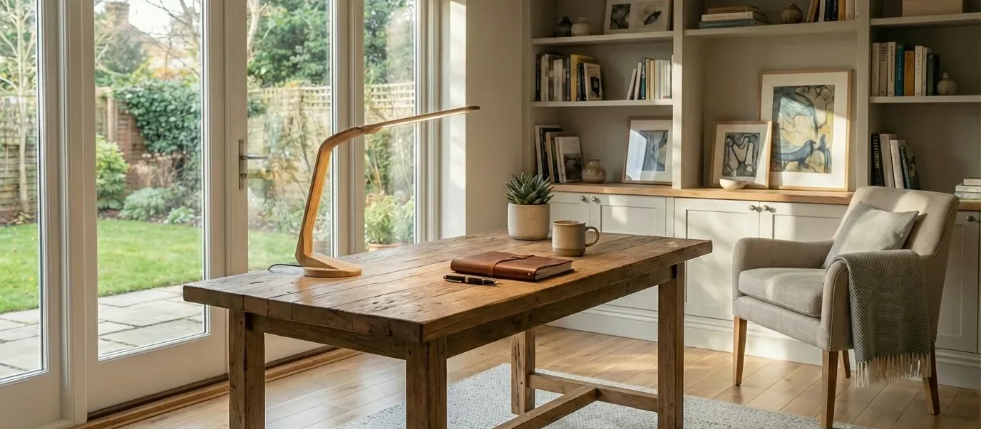 Designed to sit neatly on desks or study tables, the lamp blends natural wood texture with clean, contemporary lines. Its understated profile makes it a practical lighting solution as well as a subtle design element for home offices, studios, or reading corners.